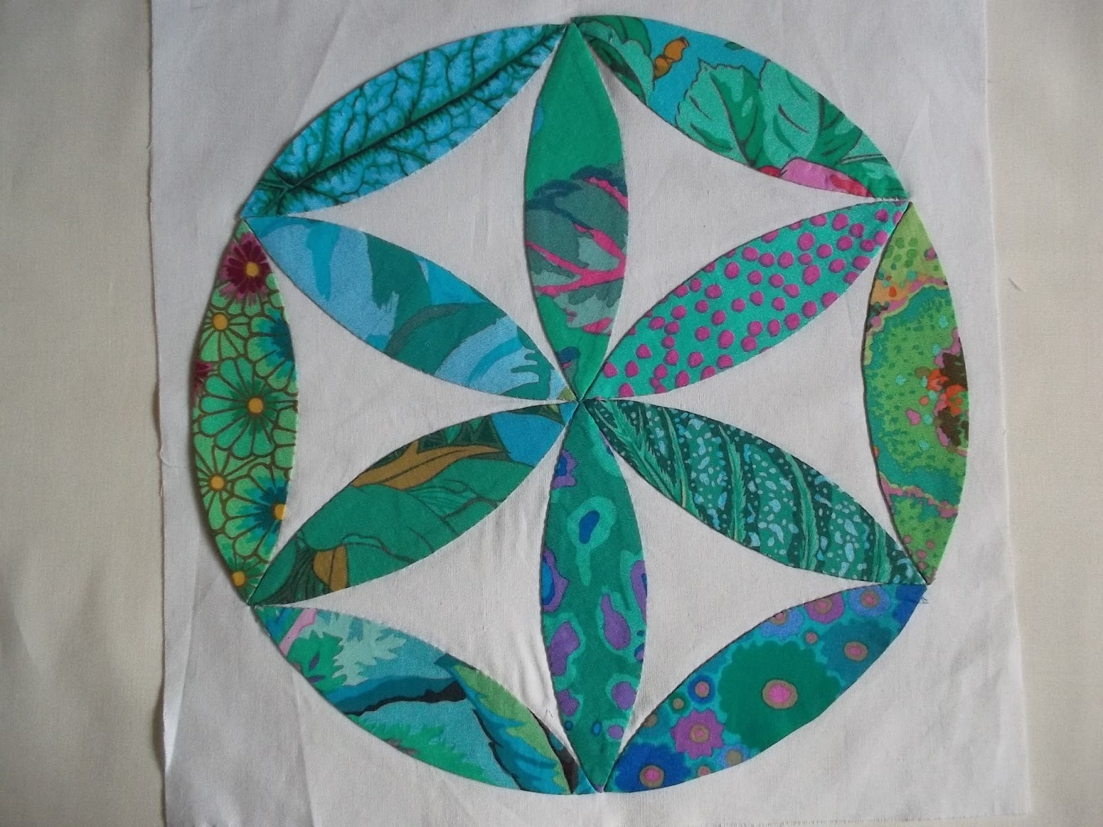This is the last full block. This afternoon I plan to start laying out all my blocks ready to applique onto a large background fabric. I still have a few half blocks to make to fill in the gaps at the edges.